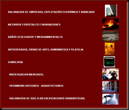 Es tan amplio el mundo de las valoraciones que, resulta imposible abarcar todos los campos atendidos por Especialistas. Se dan situaciones a veces, que se requiere una intervención de equipo multidisciplinar compuesto por Profesionales capaces de dar respuesta a un conjunto de peticiones en un solo encargo global (trabajo en equipo), y evitar al cliente las molestias e inseguridad de solicitar un tasador para cada cosa. Por ello, decíamos en la presentación que, ConexTasa nació con éste propósito y está en condiciones de prestar sus servicios, no solo en las tres grandes áreas que mas se demandan y conocen, sino que además, contamos con Expertos en Valoraciones Especiales que a continuación se detallan.